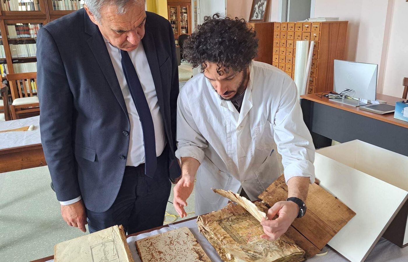 Τις τελευταίες δυο ημέρες είχα τη χαρά να παρακολουθήσω από κοντά τις εργασίες συντήρησης τριακοσίων εξαιρετικά σπάνιων βιβλίων που φυλάσσονται στους χώρους της Δ. Ι. Β. Ζ. και τα οποία μέχρι σήμερα είχαν αφεθεί στη φθορά του χρόνου.