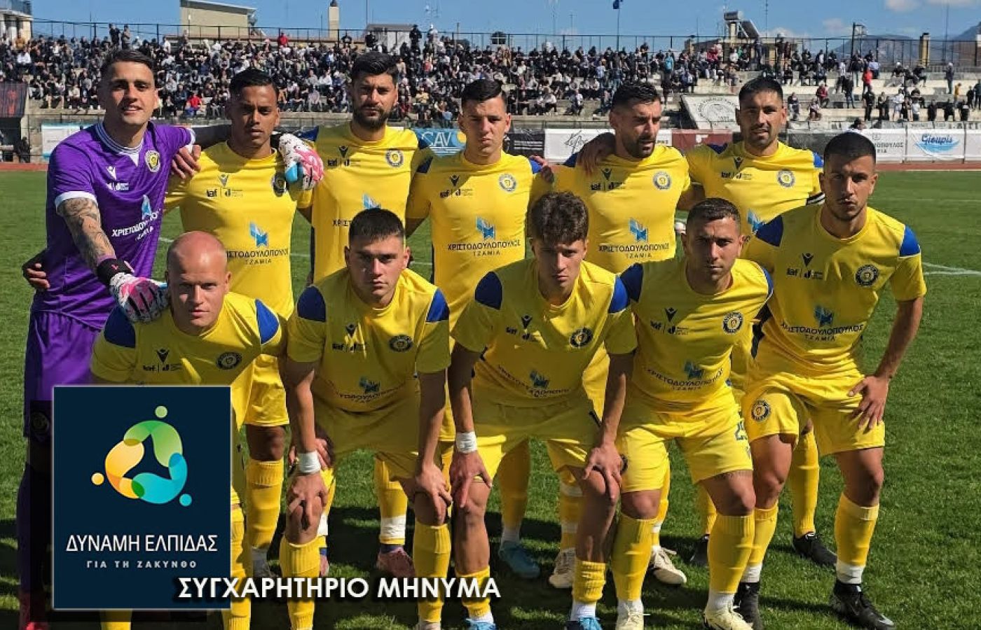 Ο συνδυασμός «Δύναμη Ελπίδας» εκφράζει τα θερμά του συγχαρητήρια στην ποδοσφαιρική ομάδα του ΑΠΣ Ζάκυνθος για τη σημαντική της επιτυχία να συνεχίσει στα μπαράζ ανόδου, διεκδικώντας την άνοδο στη Β’ Εθνική κατηγορία.