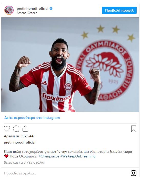 Την πρώτη του ανάρτηση ως ποδοσφαιριστής του Ολυμπιακού έκανε ο Ροντινέι.