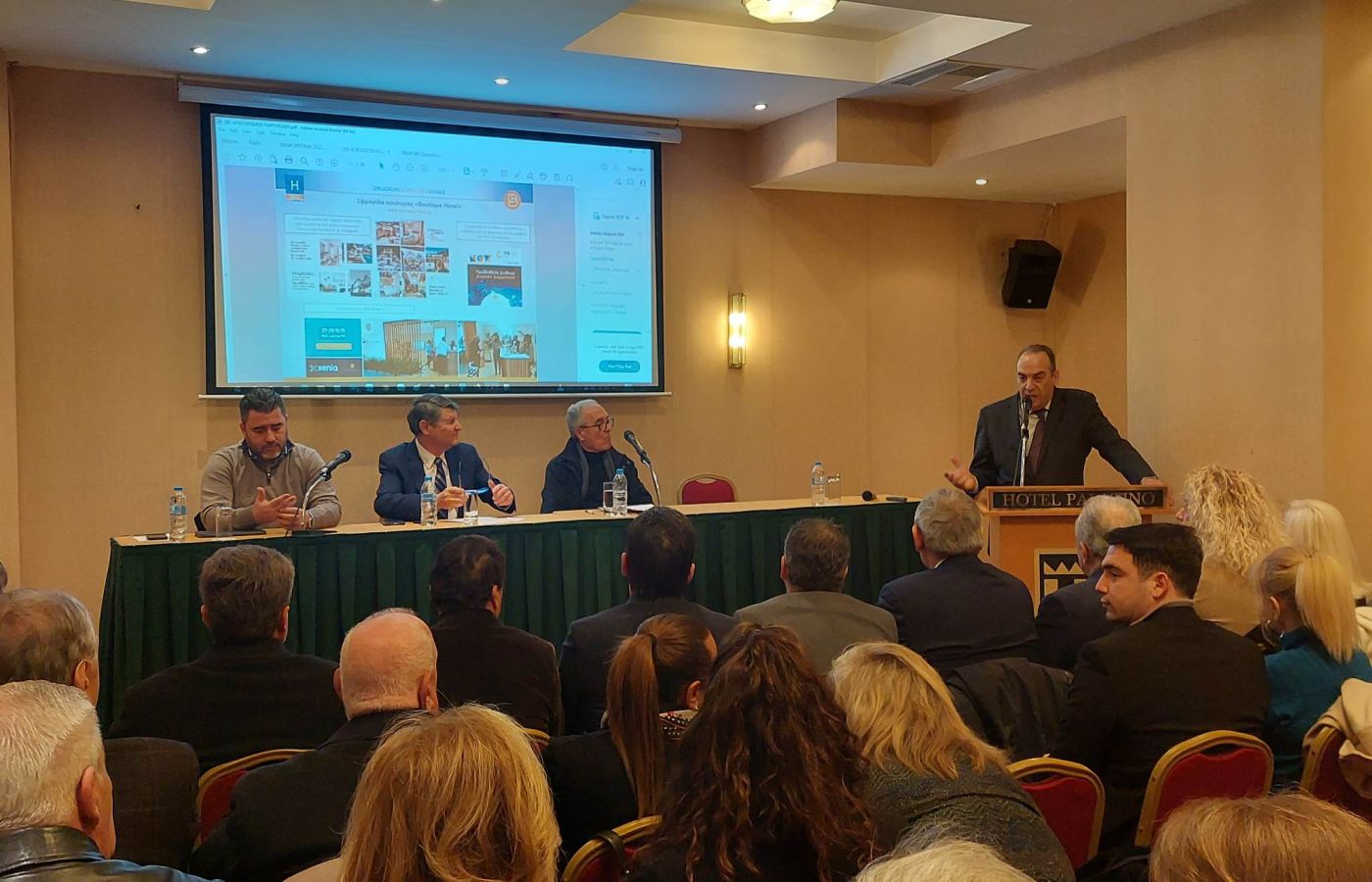Έγινε μια αναφορά και δείξαμε στην οθόνη τους αριθμός των επισκεπτών στο νησί. Πέρυσι είχαμε 950 χιλιάδες ξένους , που ήρθαν αεροπορικά. Με μέσο όρο 7 διανυκτερεύσεις , μας χρειάζονται για να εξυπηρετηθούν όλοι , σχεδόν 2 δις λίτρα νερού. Από αυτό το 10% είναι ένφορτο με το οργανικό φορτίο. Με 5 κιλά σκουπίδια που προβλέπει ο παγκόσμιος οργανισμός είναι 35 τόνοι φορτίο, μόνο το τετράμηνο του καλοκαιριού. Τα έχουμε μετρήσει και αναλύσει σαν επιχειρηματίες. Η δημόσια αρχή δυστυχώς ολιγωρεί σε αφάνταστο βαθμό. Εισπράττουμε από τον εισερχόμενο τουρισμό 1 δις. Είναι δυνατόν η αγελάδα Ζάκυνθος να συνεχίζει να δίνει αυτά που δίνει, όταν δεν μπορεί να εισπράξει; Πρέπει να στραφούμε να δούμε και την ποιότητα ζωής των κατοίκων.