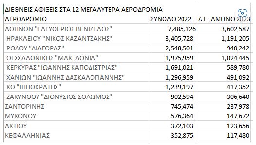 Την πρώτη χρυσή δωδεκάδα σε διεθνείς αφίξεις εκτός από την Αθήνα την Θεσσαλονίκη, τη Μύκονο και τη Σαντορίνη, συμπληρώνουν ακόμη προορισμοί όπως το Ηράκλειο Κρήτης, η Ρόδος αλλά και η Κως, τα Χανιά, η Ζάκυνθος, η Κέρκυρα το Άκτιο και η Κεφαλονιά.